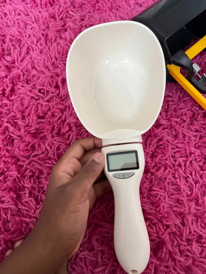 "OMG! This is a game-changer for pet owners like me. Accurately measuring my dog's food has helped keep him healthy and happy. The spoon is super easy to use and switch units. Love that it also works for my baking needs. A must-have! ❤️"